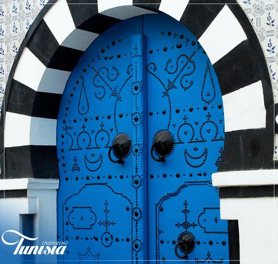 Chi visita la Tunisia non può che rimanere incantato dalla bellezza delle sue porte. sono tutte belle, colorate e cariche di significati. Le più particolari sono quelle ad arco a due battenti con una piccola porticina nella porta denominata khoukha (pesca).