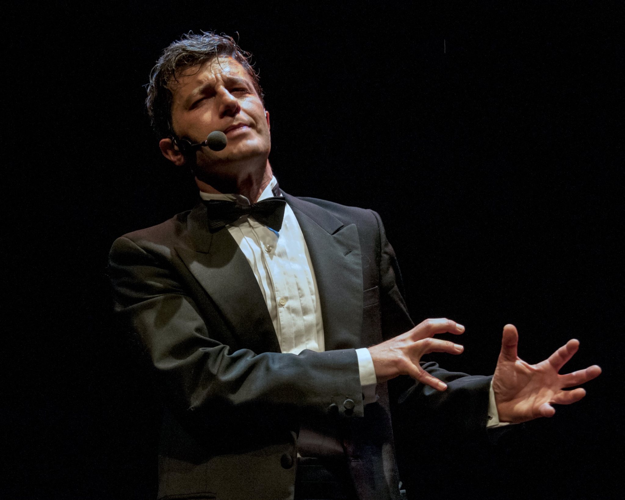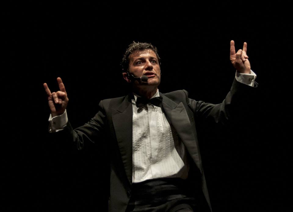 E così, consci di questa ‘impossibilità’ non impedita (in quanto causata solo dal sonno delle coscienze) di qualsiasi ribellione, Elio ed Emy per oltre un’ora ci incatenano al palco facendoci ridere di noi stessi e della classe digerente che, indegnamente (?), ci rappresenta. Quasi una commedia dei contrari questa scritta dall’irriverente Crifò: da una parte la santità del Giubileo della Misericordia, dall’altra la gestione data alla Chiesa dei bordelli italiani fino al 1958 (una prostituta a parrocchia, un bordello a diocesi); da un lato la caparbietà di uomini come Franco Caddeo, che hanno dato la vita per la verità, dall’altra il riciclaggio di denaro sporco affidato alla grande distribuzione organizzata (da leggersi in stile mafioso). E così via…. se il pubblico ride per le tante battute, senza dubbio c’è da chiedersi se non si tratta di una risata catartica che serva quasi da sfogo: ritrovarsi in uno dei più antichi teatri di Roma, per una sera, a lasciarsi intrattenere da un uomo e da una donna che, con un candido sorriso, ci fanno capire che i veri ‘terroristi’ siamo noi, che accettiamo di vivere così, senza più guardarci dentro né intorno, ma solo fissando dritto davanti a noi, senza altra prospettiva che chiedere pietà a un Cristo in croce che ci incita alla ribellione o uno schermo piatto che ci rimanda solo il riflesso della nostra sbiadita indignazione. Uno spettacolo da non perdere per chi vuole guardare in faccia, per una sera, la nostra classe digerente.