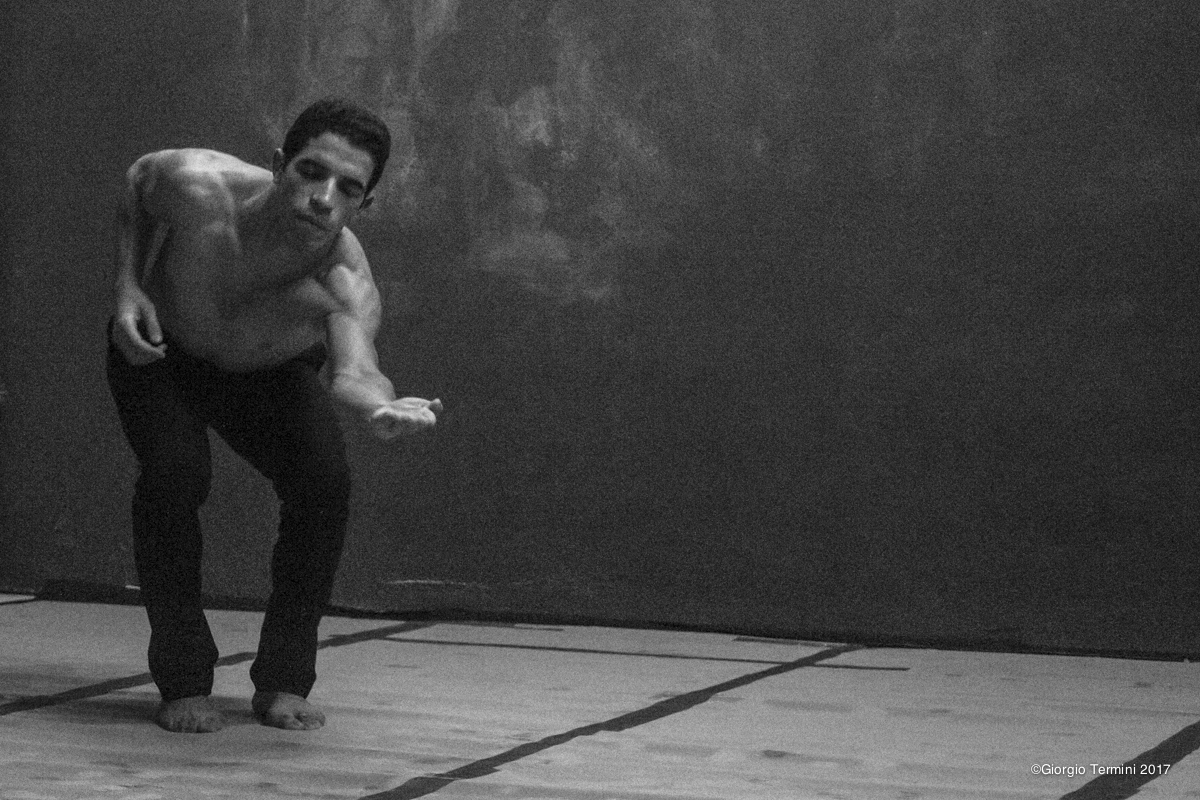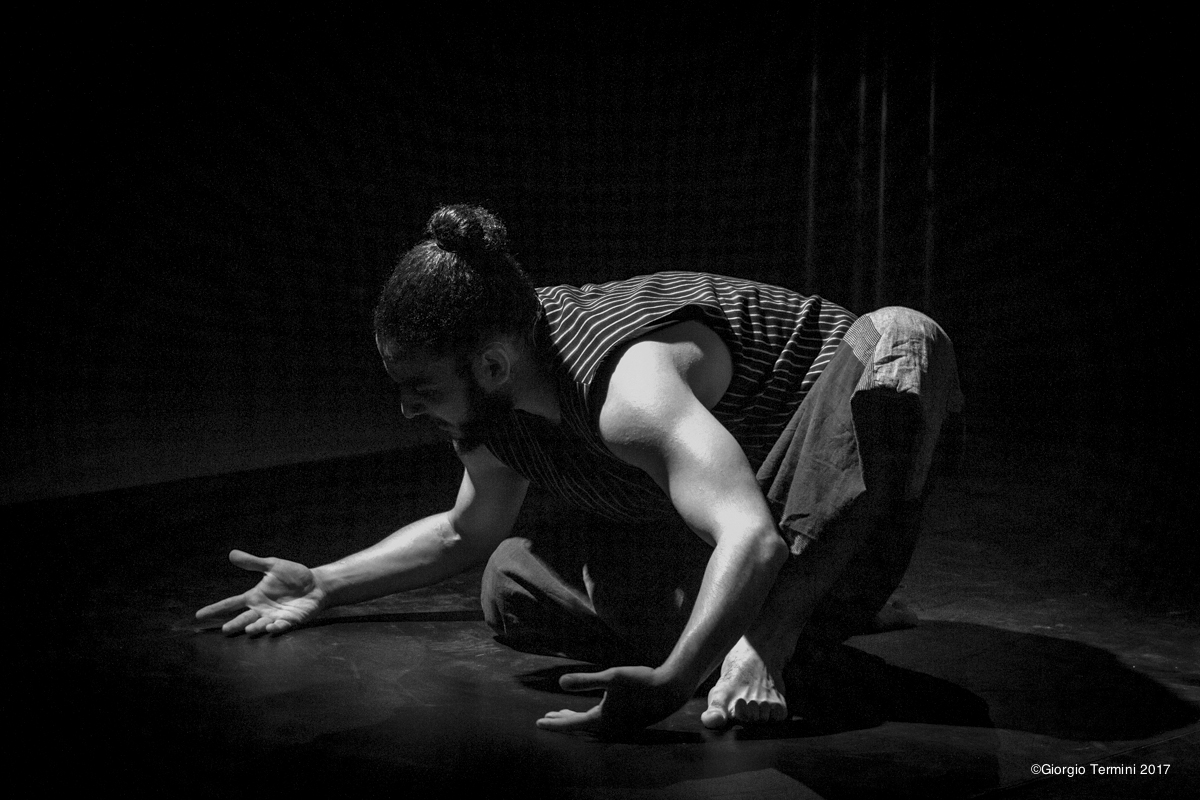 Diversa e altamente ipnotica è invece la performance di Mounir Saeed, che dall’Egitto rivisita la Divina Commedia dantesca in un mélange musicale intriso di inni cristiani e canti orientali concepiti per fondere in un’impressione estatica la differente spiritualità delle due culture. In What about Dante il lavoro ispirato all’Inferno è combinato con lo spiritualismo del Sufismo creando una melodia tra il movimento e il suono che ci trascina in un vortice circolare fisico in cui lo stesso corpo del solista si perde nell’ultraterreno. Infine Hamdi Lakhdher (Dridi) che della Tunisia riporta visivamente la sua infanzia danzandone i ricordi con l’obiettivo di restituire la presenza fisica del proprio padre, un imbianchino, nel suo luogo di lavoro ricoperto di cartoni. Le sue braccia, protagoniste suggestive in una scena semibuia, raccontano lentamente il dolore trasformando la triste realtà della malattia terminale vissuta dal genitore in una assoluta poesia di perfetta integrazione tra suono e movimento.