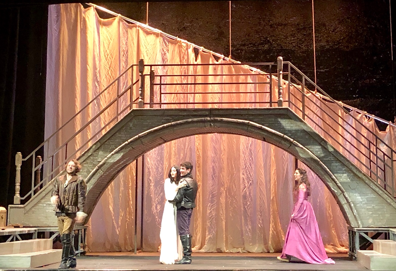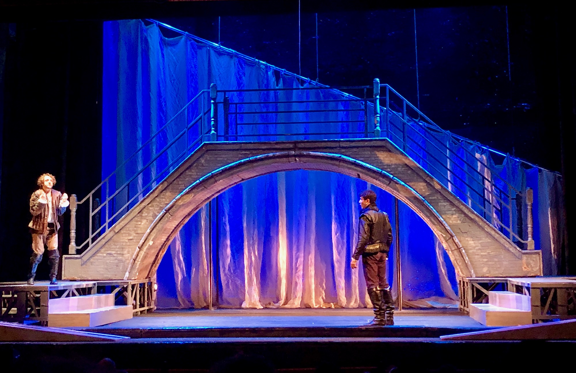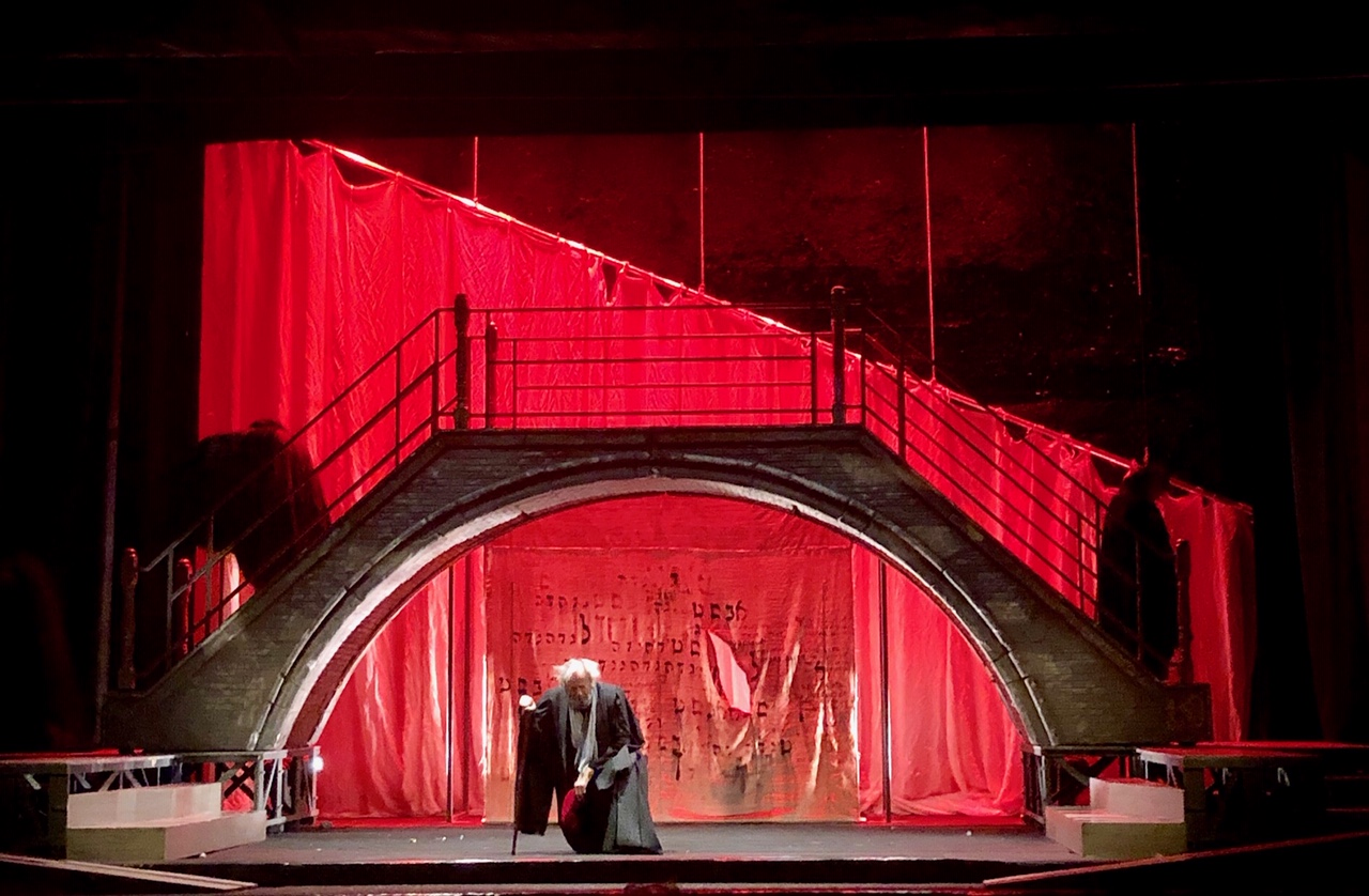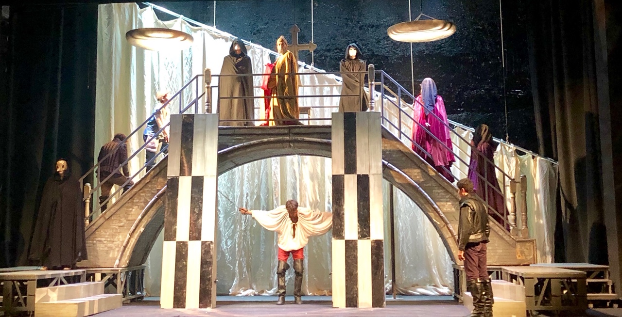 Una gravità nei movimenti e nelle espressioni che trasuda dolore: il dispiacere di essere additato e criticato perché “ebreo” ma soprattutto per praticare l’usura, peccato grave per i cristiani. Nei panni del suo nemico giurato, un mercante navale Antonio – il bravo Ruben Rigillo suo figlio – prodigo e benefattore in città, che per aiutare un amico dovrà farsi garante di un prestito proprio con Shylock, impegnando “una libbra di sua carne” in cambio dei tremila ducati da restituire in tre mesI. Un crogiuolo di sentimenti: invidia, avarizia, gelosia, amicizia e amore; una lotta tra il bene e il male, tra l’avidità incarnata da Shylock e la generosità rappresentata da Antonio. In campo anche il conflitto religioso che oggi come ieri animava il dibattito sociale. Un’epoca in cui mal si tollerava l’usura, che dilagava come una piaga nelle città, utilizzando le commedie quale specchio della volontà dei potenti patrocinatori per attirare lo sguardo dell’opinione pubblica sul “nemico ebreo”, distogliendolo così dal vero “mal governo” che affamava i poveri.