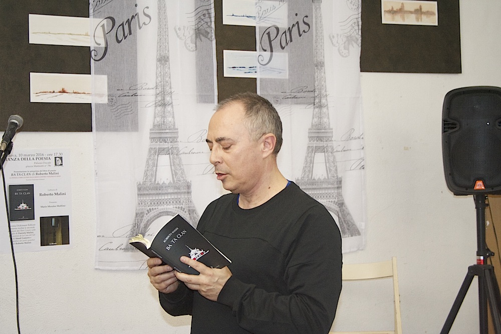 GENOVA – Nel pomeriggio di ieri, 10 marzo, si è tenuto alla Stanza della Poesia il reading del poeta Roberto Malini, che ha presentato in anteprima versi dalla sua recente raccolta “Ba Ta Clan” (Lavinia Dickinson Editore).