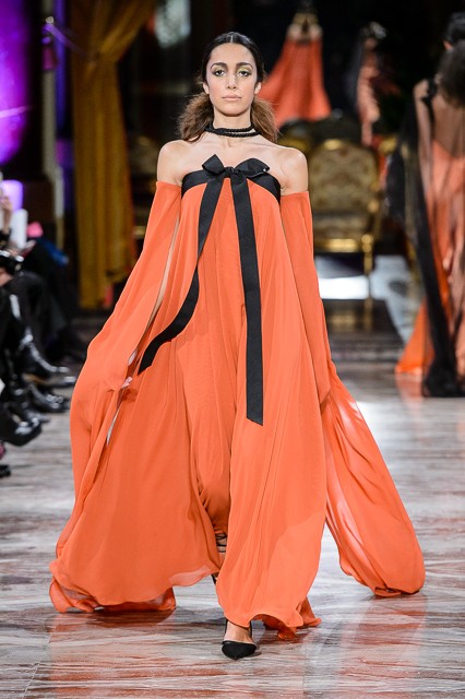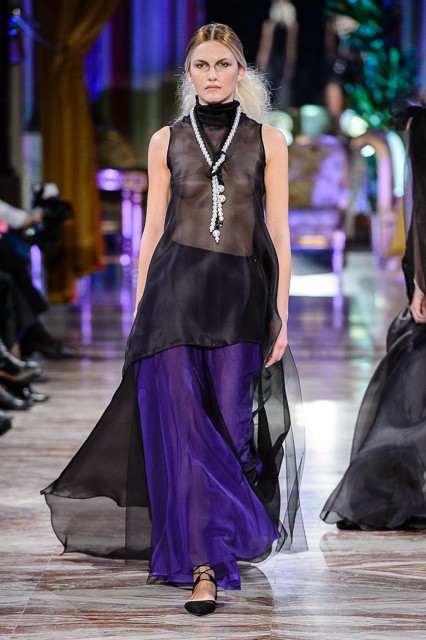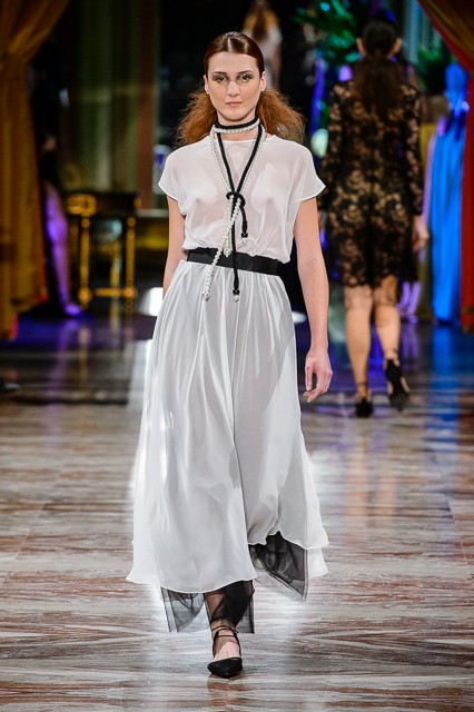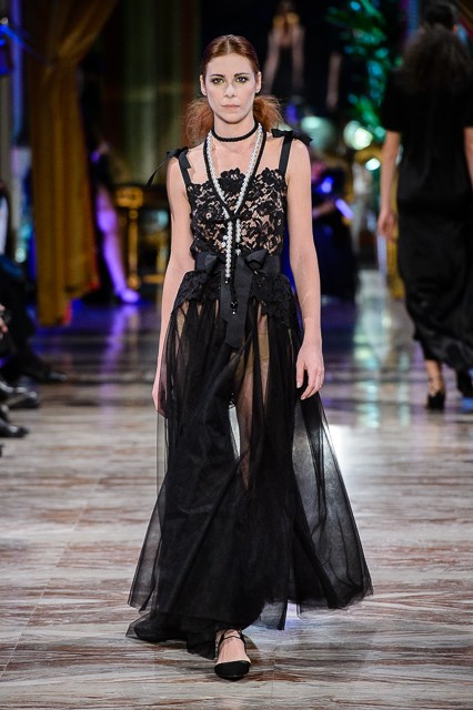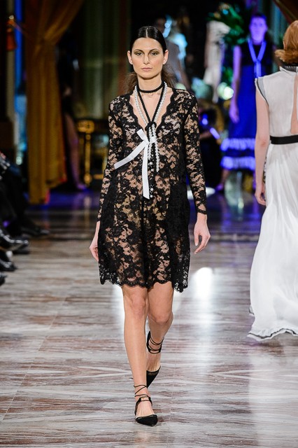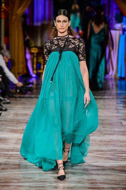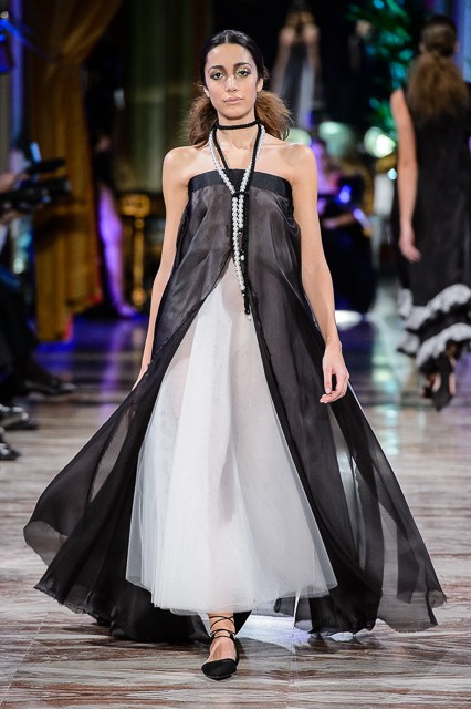 Dalla quella scia di corrente futurista, nella quale si è imposta la figura epocale della “Divina Marchesa”, nasce la “Donna” Primavera/Estate 2016 di GiadaCurti. La musa di Boldini amata da D’Annunzio ha ispirato le 21 creazioni sartoriali haute couture che si ispirano ad una dark lady dall’eterna allure, dagli occhi neri macchiati di oro bistrati e pupille feline. Abiti fluidi realizzati da velate e impalpabili trasparenze, sovrapposizioni di tessuti elaborati come il pizzo rebrode’ su vestaglie satin.