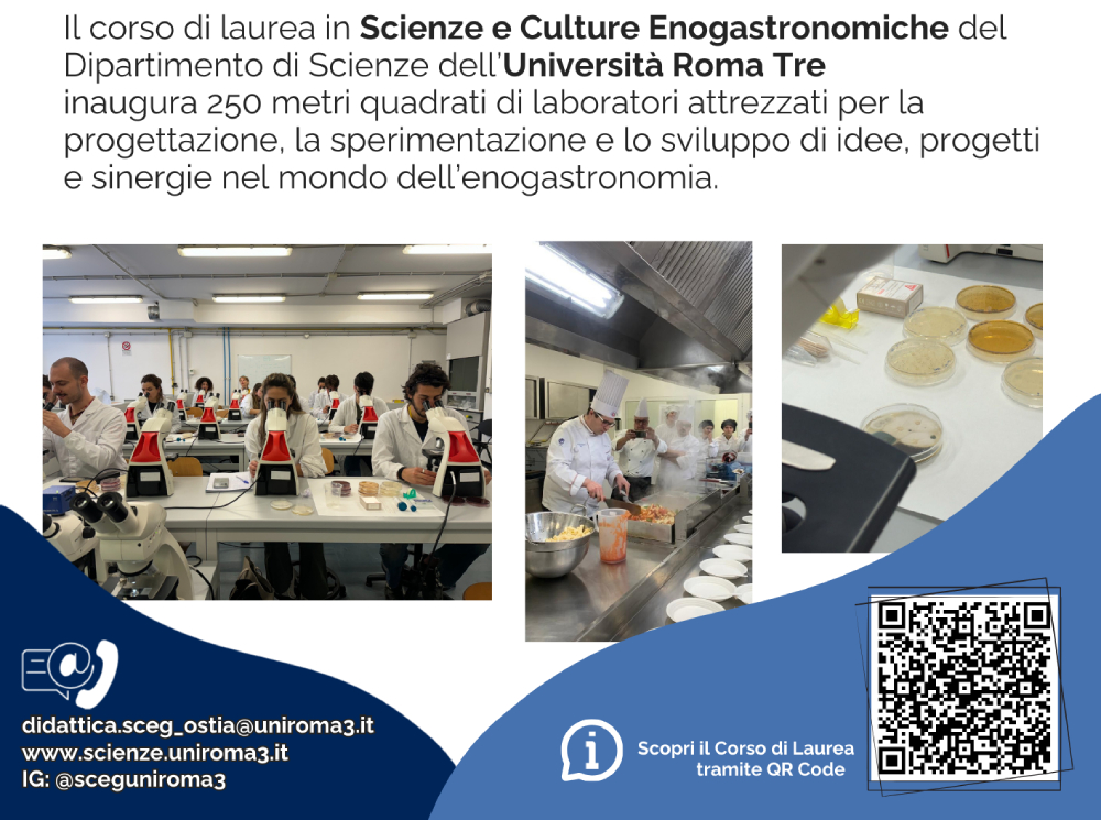 L’Università degli Studi Roma Tre rafforza il proprio ruolo nel settore food inaugurando i nuovi laboratori dedicati al corso di laurea in Scienze e Culture Enogastronomiche, un percorso accademico unico nel Centro Italia e sempre più strategico per lo sviluppo dell’enogastronomia contemporanea.