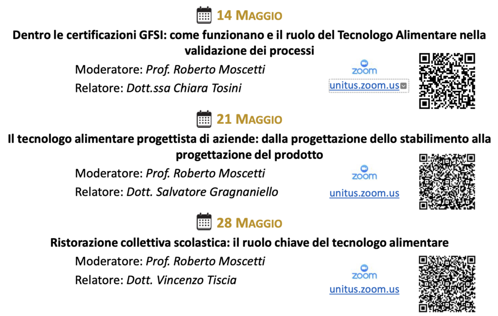 Per gli iscritti all’Ordine dei Tecnologi Alimentari è previsto il riconoscimento di 2 crediti formativi per ciascun seminario.
