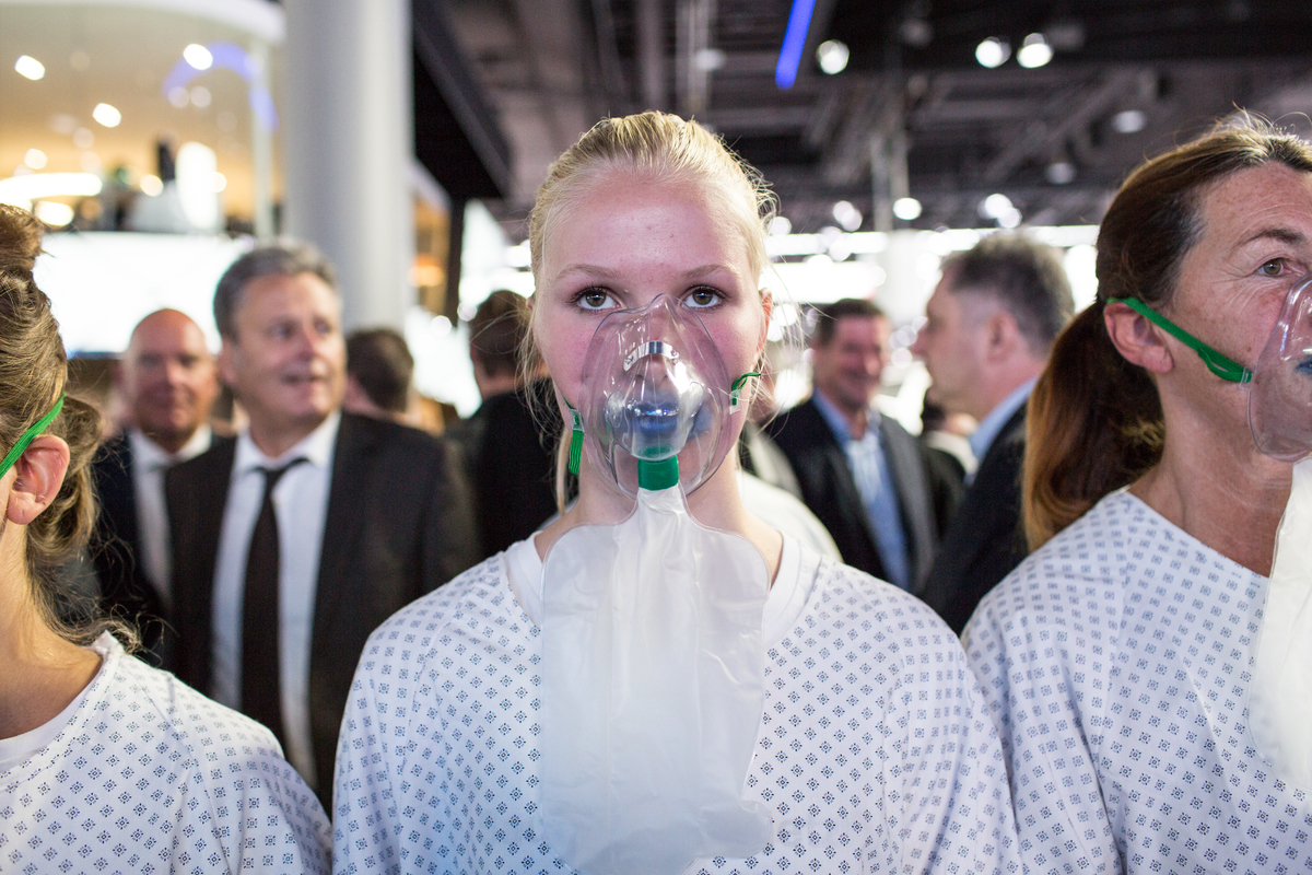 I cento attivisti, vestiti da pazienti ospedalieri, si sono riuniti pacificamente in una delle sale espositive per poi “esplodere” in una forte tosse collettiva. Quindi hanno lasciato le loro mascherine respiratorie ospedaliere agli stand espositivi. Con questa protesta nonviolenta Greenpeace vuole evidenziare le contraddizioni del settore dell’auto. Se da un lato molti brand annunciano proprio in questi giorni al Salone di Francoforte il lancio di nuovi modelli di macchina elettrica, dall’altro è loro intenzione continuare a vendere, per molti anni ancora, auto diesel o alimentate a benzina.