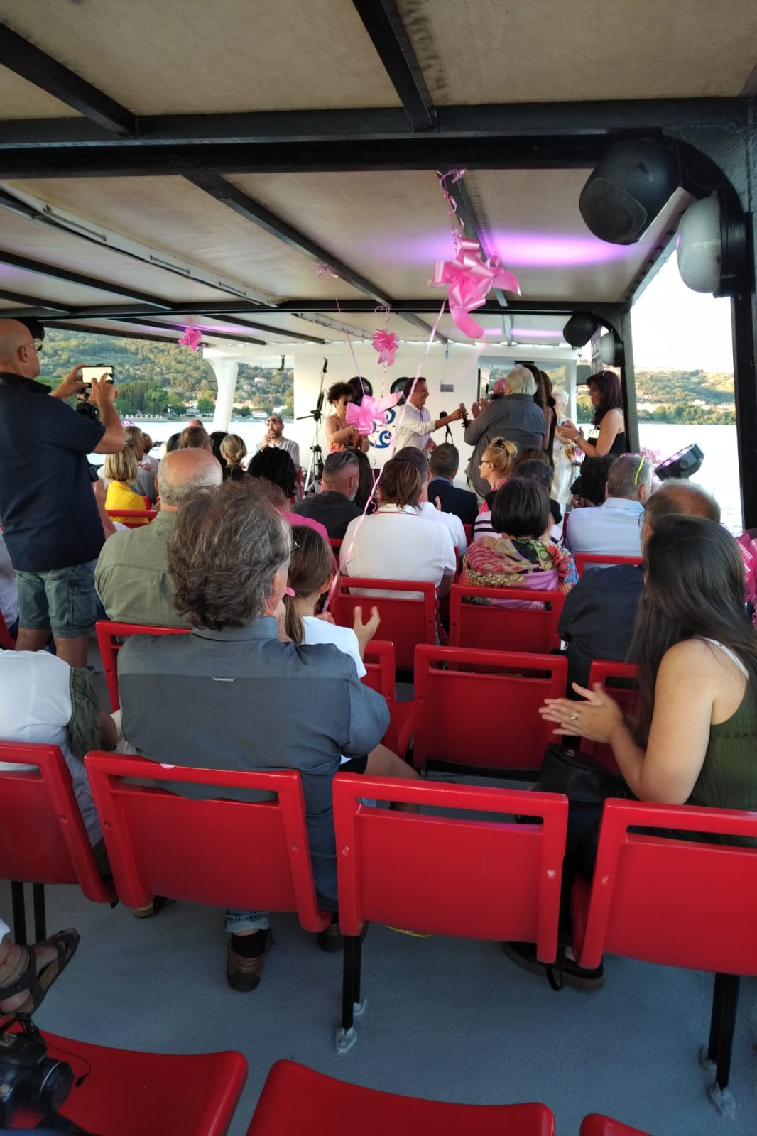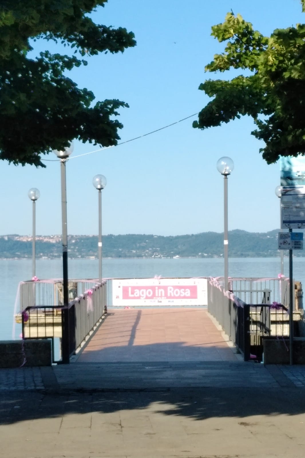 Sabato mattina Trevignano Romano si sveglia con la passeggiata lungolago colorata di rosa: tulle rosa sulle ringhiere, fiocchi e nastri rosa appesi agli alberi, trionfi di palloncini rosa ovunque.