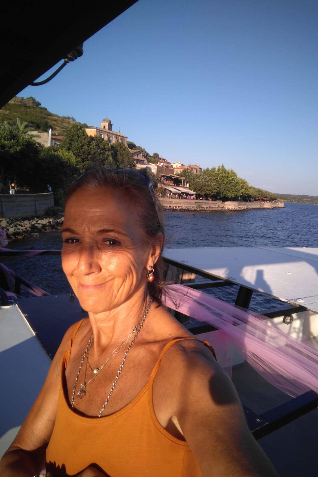 Alle 19 arriva al molo la Motonave Sabazia II, nella quale verranno allestiti i camerini e il backstage: salgono le modelle, gli ospiti, la stampa, le autorità, tanti sindaci e rappresentanti dei Comuni e di tutte le realtà che hanno collaborato. “Signori si parte” annuncia il Comandante: il lago di Bracciano e Trevignano Romano dal lago al tramonto sono magici. Le donne – e lo dico con affetto e ammirazione – commoventi nel loro splendore, segno di una rinascita che stanno davvero vivendo.