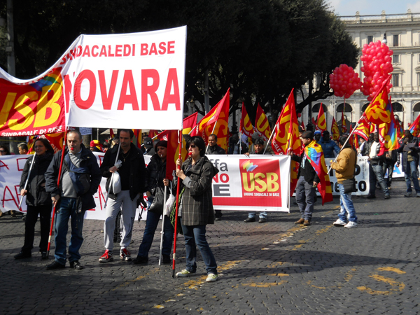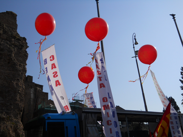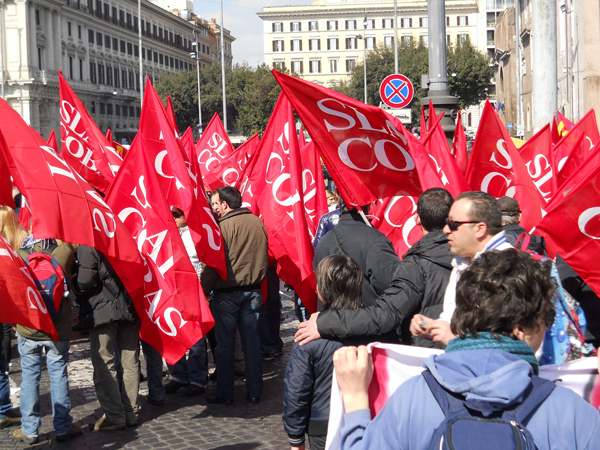 ROMA – Il Sindacato di Base di nuovo in piazza per protestare contro l’attacco sconsiderato del Governo Berlusconi ai diritti fondamentali dei lavoratori nel settore pubblico e nel privato. Dopo un’azione di sensibilizzazione capillare svolta in tutti i luoghi di lavoro per spiegare i guasti provocati al paese dalle riforme Gelmini, Brunetta e dal sanguinario modello Marchionne, insegnanti, operatori socio-sanitari, operai, impiegati, studenti, precari, vigili del fuoco, auto-ferrotranvieri, blocchi metropolitani, inquilini resistenti, provenienti da ogni parte d’Italia, si sono dati appuntamento a piazza della Repubblica per far sentire la loro voce e per dire di no ad un progetto politico che vuole smantellare definitivamente il modello sociale conquistato con dure lotte negli anni settanta a tutto vantaggio delle lobby imprenditoriali e di gruppi di potere ben consolidati. Dinanzi all’arroganza di una classe dominante che ha fatto del profitto e del mantenimento dei privilegi di casta il proprio vessillo mascherandolo con operazioni demagogiche di facciata, c’è un popolo vivo e pulsante che, in un corteo compatto e ben organizzato, si è snodato per le vie del centro di Roma fino a piazza Navona, gridando slogan in cui è emerso chiaro il proprio sdegno per una deriva autoritaria che vuole comprimere e mortificare la dignità delle persone. E’ in questo che si vede la forza di un sindacato che, dal basso, è capace di mobilitare le forze più attive e combattive di questo nostro paese messo in ginocchio da politiche fallimentari e da un riformismo becero e incapace di dare risposte concrete a chi non riesce più a condurre esistenza decorosa.