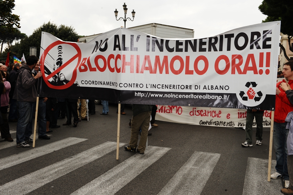 Non ci sta il coordinamento, non ci stanno i tanti movimenti ambientalisti, parte delle istituzioni e la società civile, che ancora una volta si sono dati appuntamento per dar vita ad un corteo contro la realizzazione di uno dei più grandi inceneritori che dovrebbe sorgere a Roncigliano, nell’area del Castelli Romani. Migliaia di persone sono partite dalla piazza centrale di Albano Laziale sfilando fino a Genzano per manifestare la loro contrarietà a questa assurda operazione, camuffata come la panacea di tutti i mali, ma che di fatto aggraverà ulteriormente una situazione in questo territorio già gravemente compromesso. Non dimentichiamo, infatti, che parliamo di una zona particolarmente a rischio. Dalle falde idriche, che allo stato attuale presentano una forte concentrazione di arsenico a causa di iuna selvaggia speculazione edilizia, alla qualità dell’aria con il vicino aeroporto di Ciampino, che con il suo traffico pari a 6 milioni di passeggeri all’anno, fa balzare la vendita di farmaci antitumorali per patologie cardio-respiratori ai primi posti della classifica nazionale.