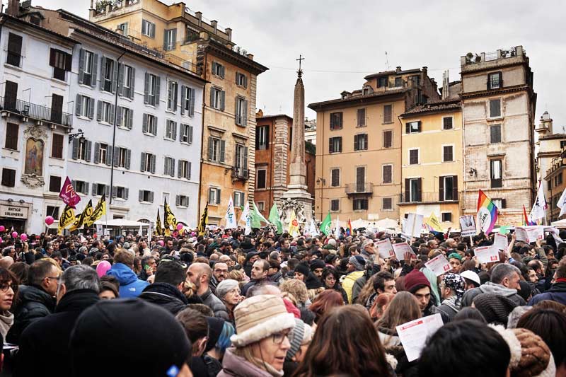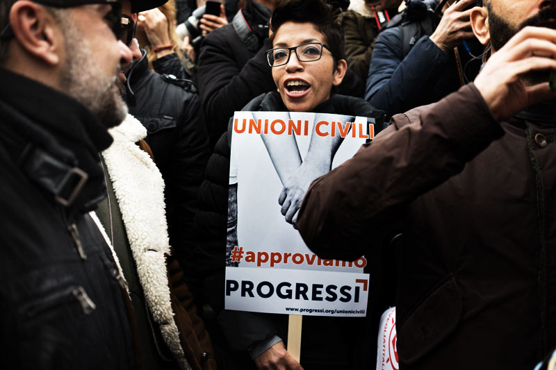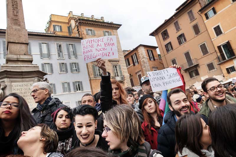I manifestanti romani che si sono riuniti numerosi al Pantheon hanno accolto con affetto Monica Cirinnà, applaudendola oltremodo quando la parlamentare dem ha esortato: “vogliamo che l’Italia diventi finalmente civile; questa è la legge del Pd e non di Monica Cirinnà”, per questo “non ci fermeremo sulla via della lotta per i diritti”. Tra i presenti anche il presidente del Pd Matteo Orfini, per il quale “la bellissima piazza di oggi ci ricorda che l’Italia è in ritardo, ma – ha assicurato – il Pd è impegnato in prima persona per colmarlo”. Al Pantheon c’era anche Benedetto Della Vedova, sottosegretario agli Esteri: “il ddl è un provvedimento civile e liberale e ritengo che chiedere un voto segreto su questo tema – ha attaccato – rappresenti in realtà la volontà di alcuni politici di nascondersi, perché a mio giudizio è evidente che su una scelta così importante sarebbe invece utile, a livello parlamentare, contarsi”. Oltre alla gente comune e a vecchi e nuovi militanti, a fianco del mondo omosessuale oggi sono scesi anche politici e rappresentanti degli enti locali.