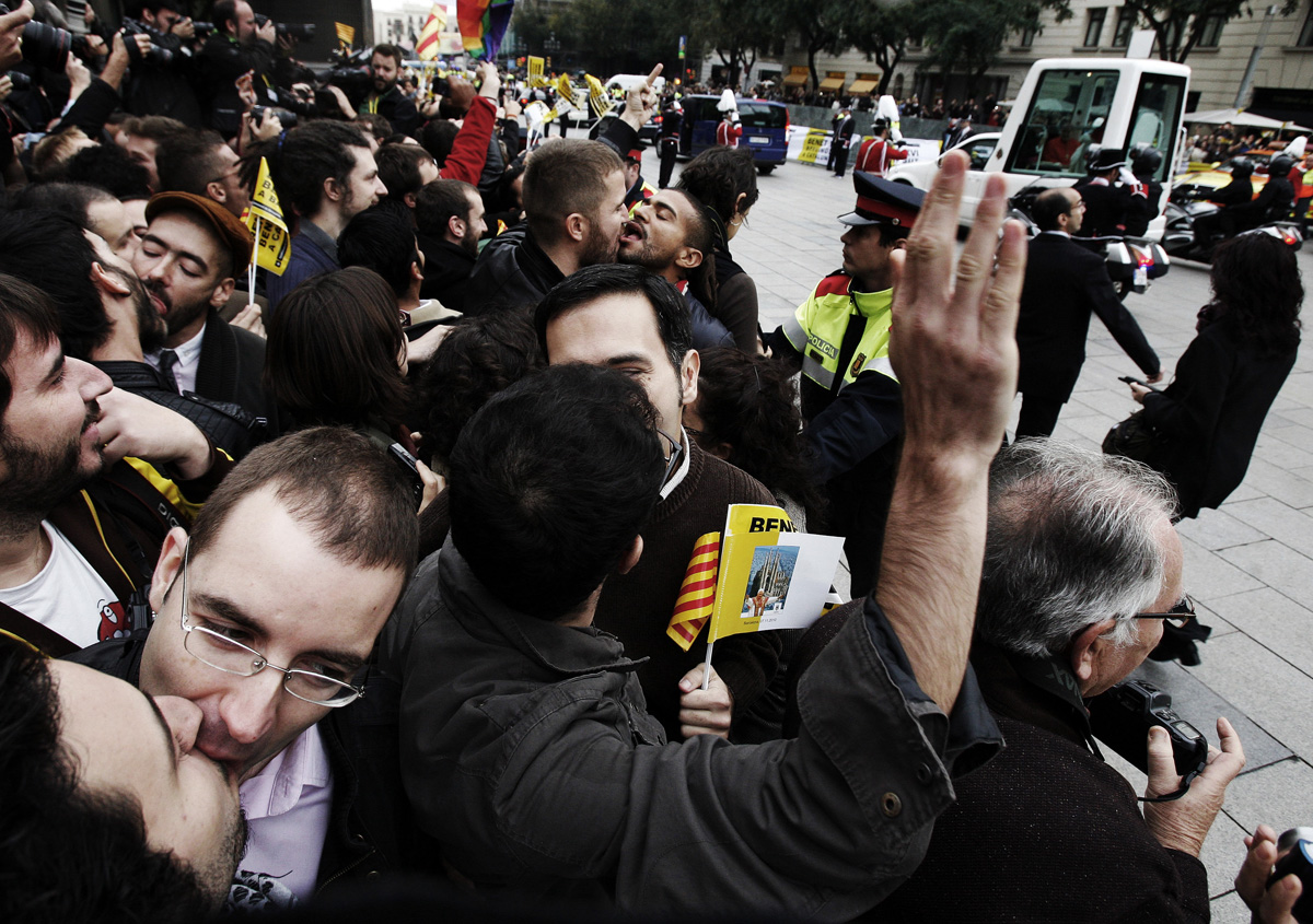Barcellona. Il Papa accolto dal bacio dei Gay. Le foto esclusive