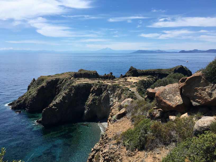 R: Filicudi è un luogo meraviglioso. Un luogo in cui la natura e il paesaggio, la stessa vegetazione, sono perfettamente conservati. Ci sono ben due insediamenti. Uno, il più antico, sulla spiaggia, composto da vere e proprie fattorie. Il secondo, sulla montagnola di Capo Graziano, più tardo, ci riporta al discorso precedente sui luoghi impervi e difendibili. Per arrivarci c’è un percorso in salita di una ventina di minuti, ma tutto sommato agevole e alla portata di tutti. Dalla cima si può apprezzare, oltre a un panorama unico, l’importanza di quel luogo, da cui si domina tutta la baia.