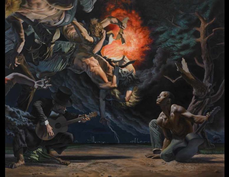 La tua ricchezza iconografica decisamente sorprendente, iperrealista, monumentale, particolareggiata, connotata da forti contrasti luministici di intensità drammatica, è evidentemente influenzata dall’arte di Caravaggio. Ma non solo…