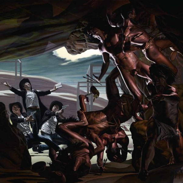 Nei tuoi dipinti la narrazione è molto importante ed appare caotica, eccessiva. Abbondano i personaggi, gli oggetti che quasi si scontrano, si sovrappongono, si mescolano. Sono opere molto cariche, con elementi altamente spettacolari, a volte anche violenti. Da cosa deriva questa scelta?