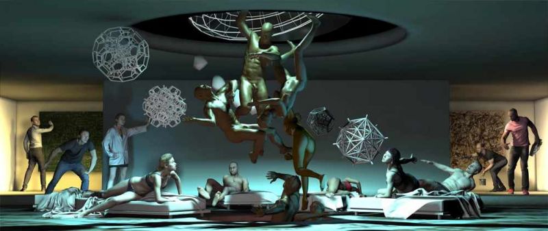 Pensiamo al quadrato nero di Malevich, che è stato un po’ questa spada di Damocle sul discorso della rappresentazione delle immagini dipinte. Oggi a ben guardare dentro a quel nero cominciano a vedere riaffiorare figure poligonali e geometriche. Con il potere della tecnologia queste geometrie possono diventare immagini organiche. Il dipinto trasforma il transeunte in qualcosa di stabile, ristrutturato dalla geometria. E’ un po’ come nell’età del bronzo, con questo materiale prima si producevano oggetti di utilità, come spade, poi si è cominciato a realizzare delle sculture. Lo stesso accade con il computer. Nato per fare simulazioni di volo per l’esercito, oggi è diventato un mezzo per fare arte.