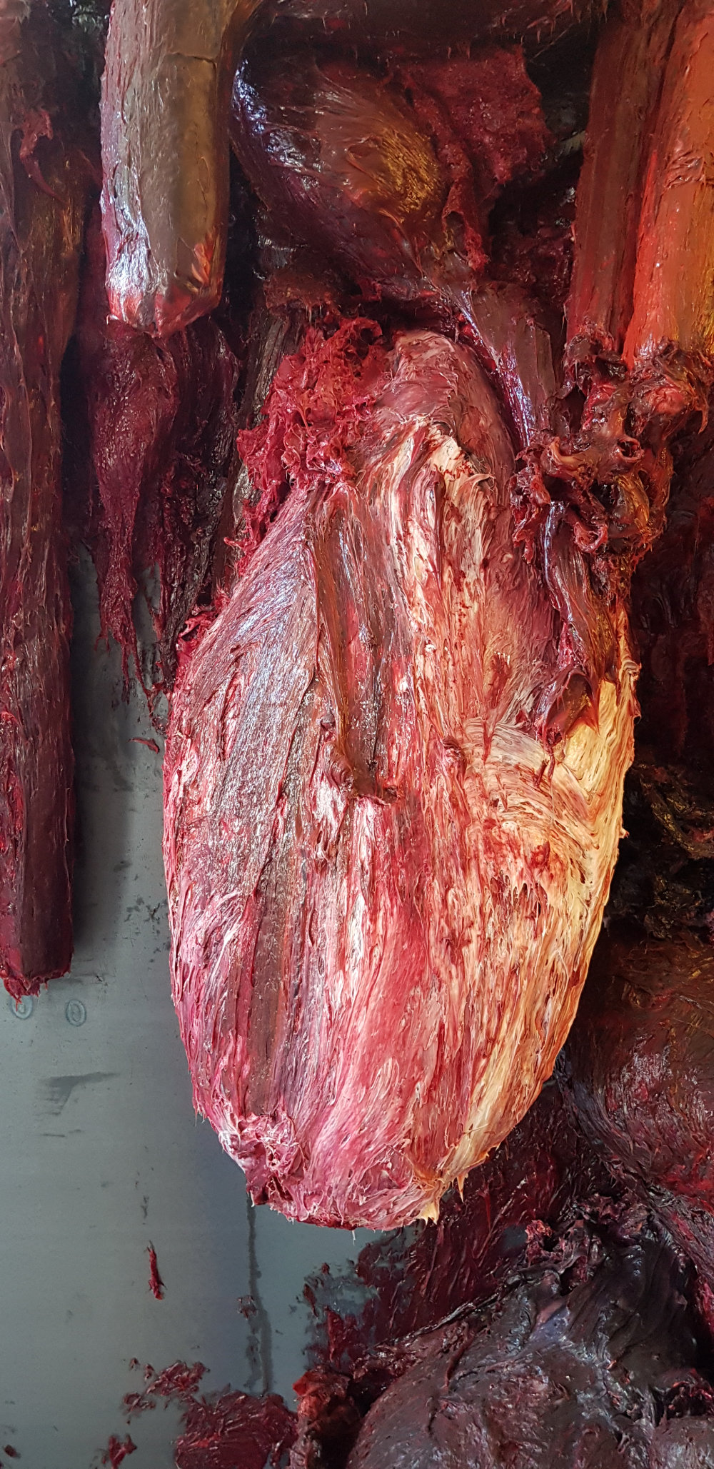 Viscerale, materica, thanatoerotica, speculare ed emofilica, sono gli aggettivi che riassumono questa esposizione, a partire dalle installazioni degli esordi fino a quelle concepite in occasione della mostra, alcune delle quali si fondono con gli spazi che le accolgono.