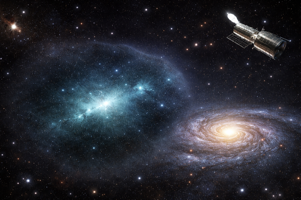 Successivamente, l’oggetto è stato studiato con il Karl G. Jansky Very Large Array nel New Mexico, che ha fornito immagini ad alta risoluzione della nube. Il passaggio cruciale è arrivato però con il Telescopio Spaziale Hubble, puntato su Cloud-9 per circa 13 ore complessive: le osservazioni profonde hanno escluso definitivamente la presenza di stelle.