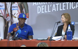 Si è svolta questa mattina, poco prima di pranzo, presso l’ATA Hotel Villa Pamphili, la conferenza stampa del Golden Gala – Pietro Mennea, dove il velocista giamaicano, bi-campione olimpico e recordman mondiale di 100, 200 e 4×100, ha risposto alle domande in una affollata sala stampa.